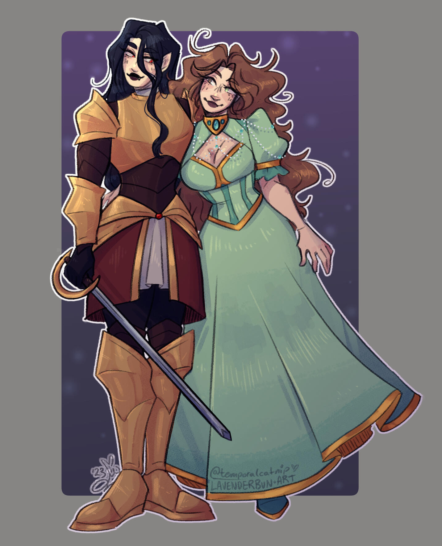 Colored piece with clean linework and my style of cell shading. Great for showing off all of your characters' shiny details.