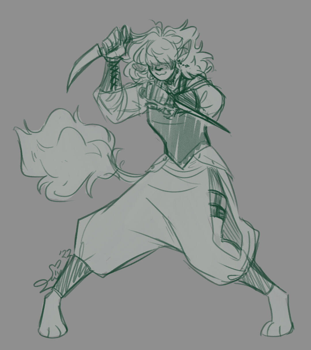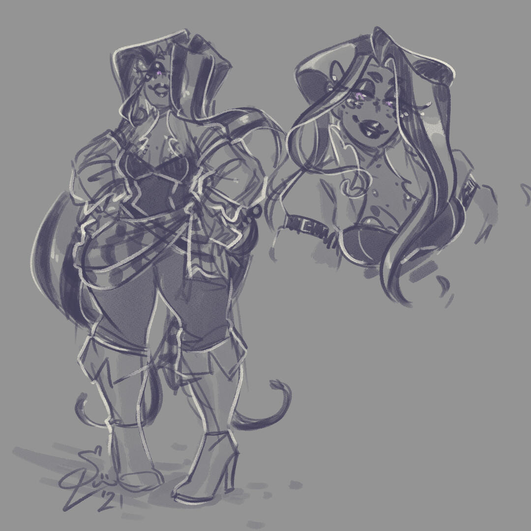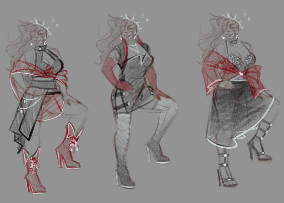 Quick sketches with rough linework. Great for quickly getting out ideas for outfits or other concept art. Can be easily upgraded to a clean sketch or inked.