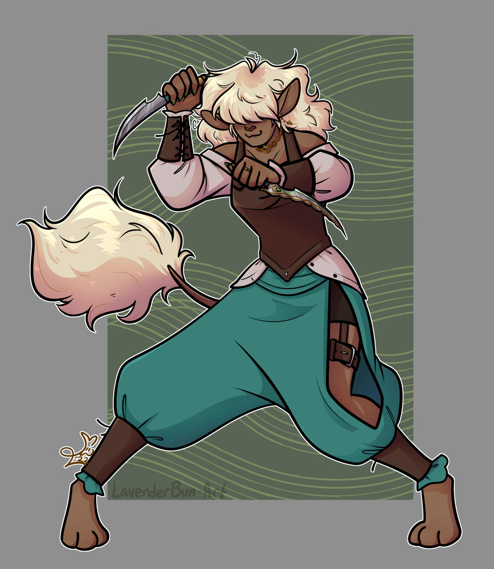 Colored piece with clean linework and my style of cell shading. Great for showing off all of your characters' shiny details.